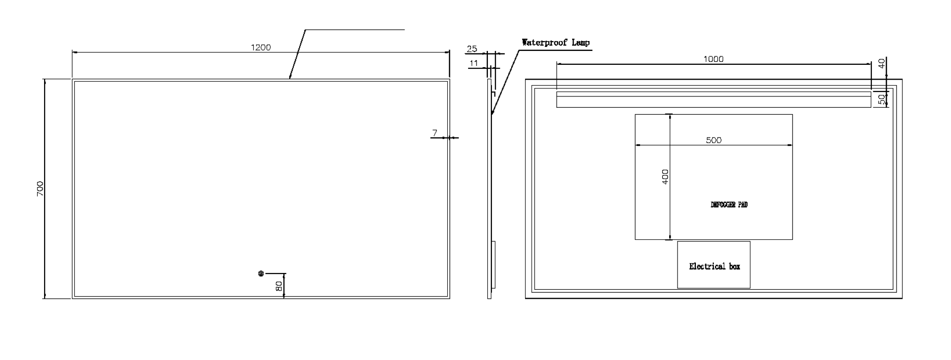 Размерный ряд от 80см до 140см. Каждое зеркало оборудовано тыльной подсветкой. Возможность регулировки температуры с помощью сенсора от теплого 3000K до холодного 6000K