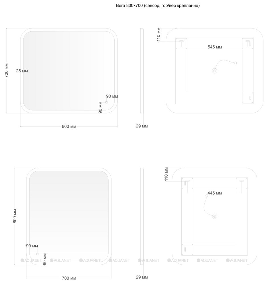 Зеркало с LED-подсветкой Aquanet Вега 80х70 см 330497