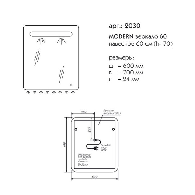 | Оснащение | Подсветка, Сенсор |
