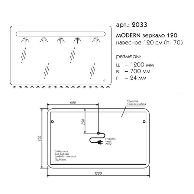 Зеркало с LED-подсветкой Caprigo Modern 2033 (120х70)