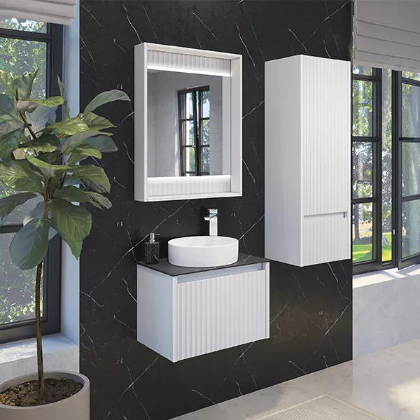 Зеркало с LED подсветкой Comforty Марсель 60 см белый матовый 00-00001278