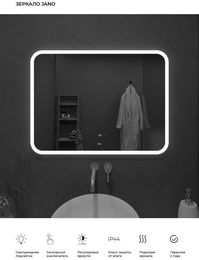 Зеркало с LED-подсветкой и подогревом Sintesi JANO 80х60 см SIN-SPEC-JANO-80