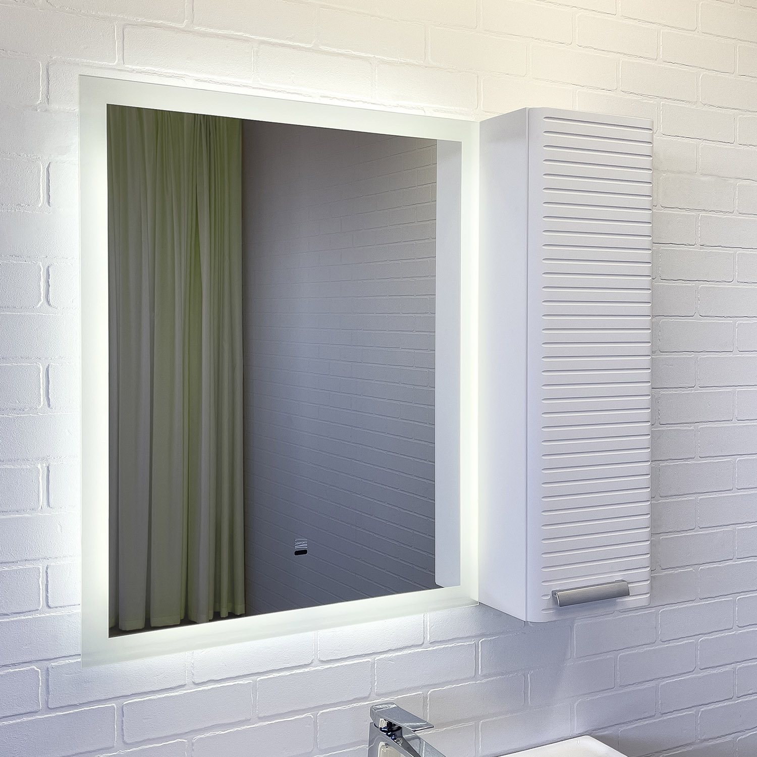 Зеркало оснащено светодиодной лентой с классом защиты IP65