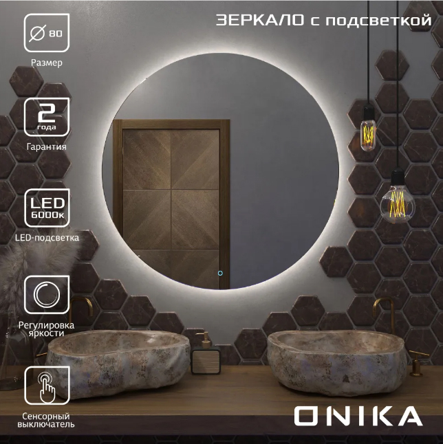 Зеркало с LED-подсветкой Onika Сола 50х50 см 205025