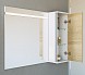 - Зеркальная панель оснащена встроенной светодиодной подсветкой с сенсорным выключателем. Зеркало может крепиться как с вертикальным положением подсветки, так и горизонтальным. Таким образом подсветка может находиться сбоку или сверху. Шкафчик с дверью на петлях с доводчиком может быть установлен слева или справа относительно зеркальной панели.