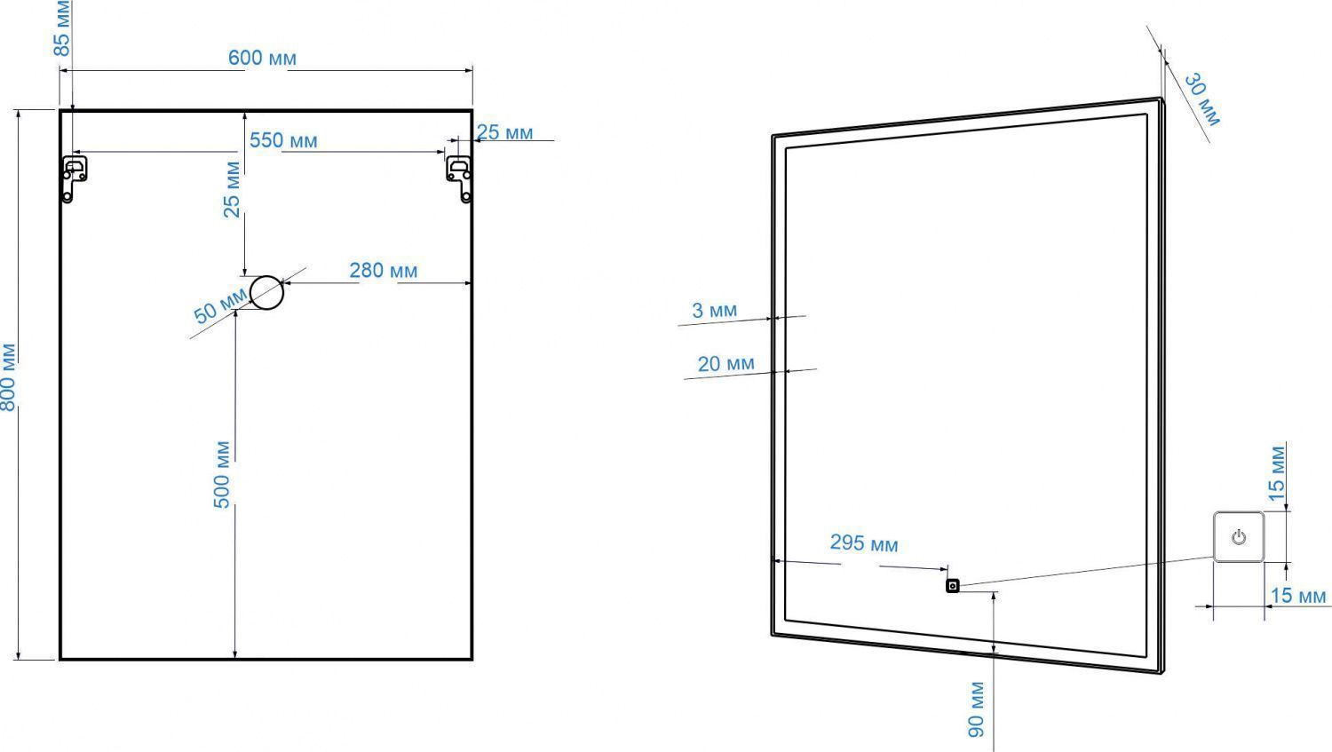 Оснащение: зеркало, крепеж, коробка, инструкция.