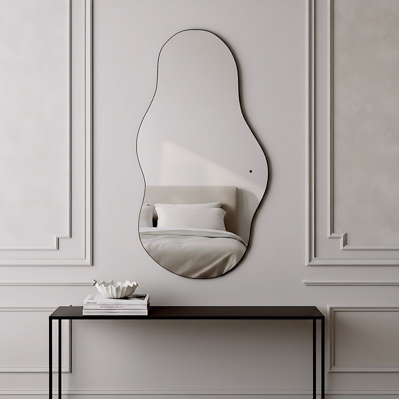 - Ореольная подсветка подчеркивает форму зеркала и создает эффект "парения".