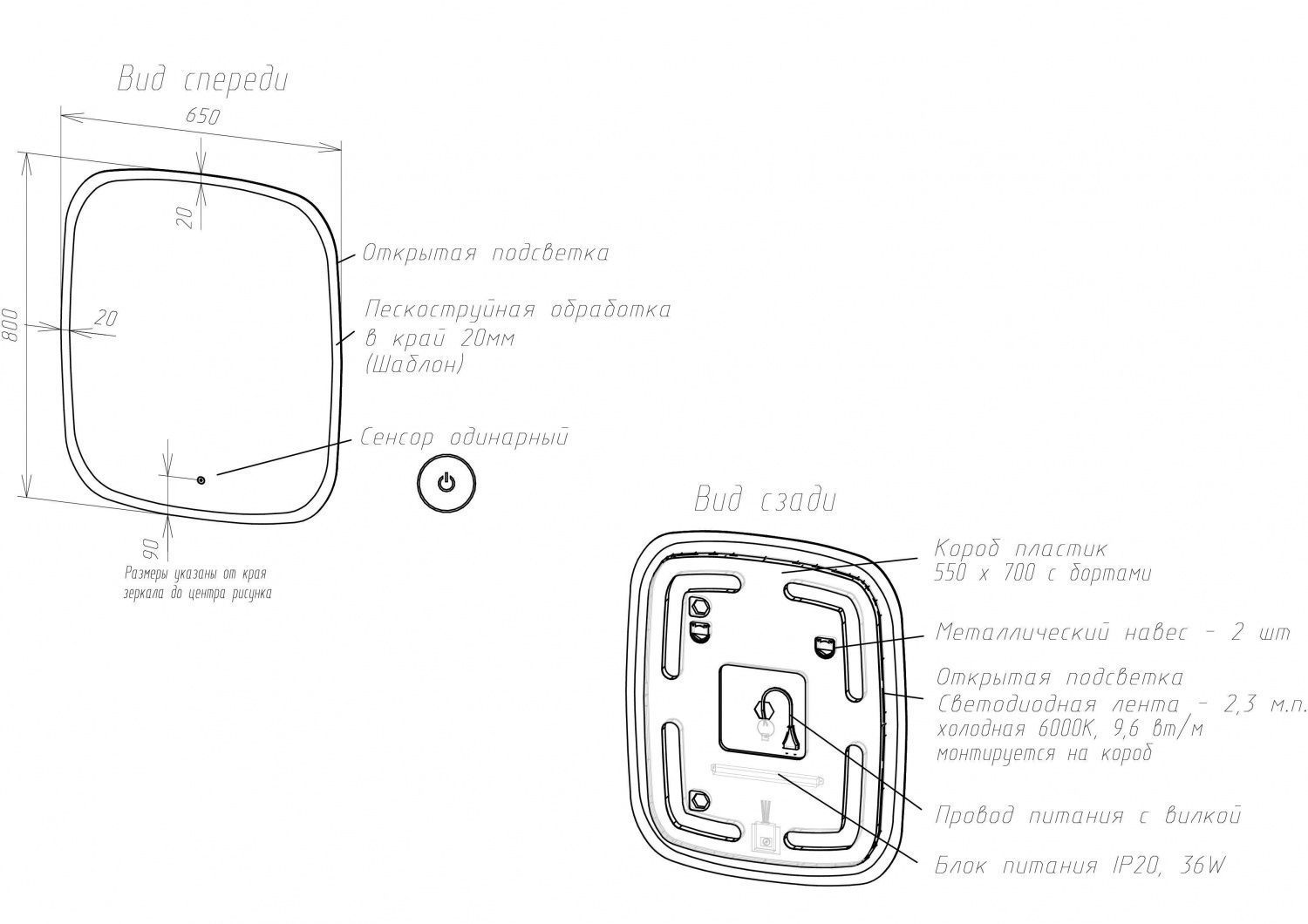 Оснащение: зеркало, крепеж, коробка, инструкция.