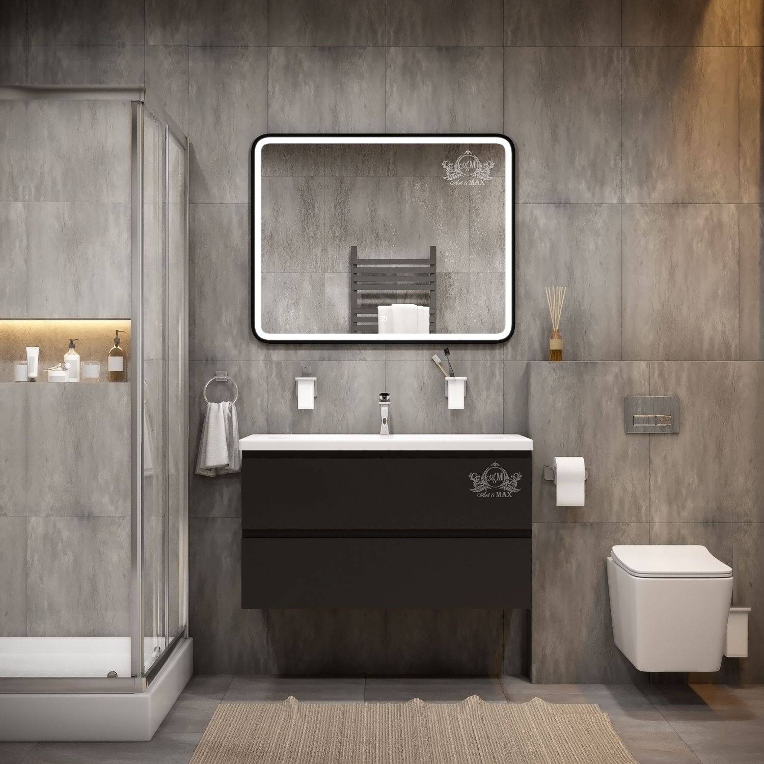 Зеркало с подсветкой Art&Max Genova 100х80 см черный AM-Gen-1000-800-DS-F