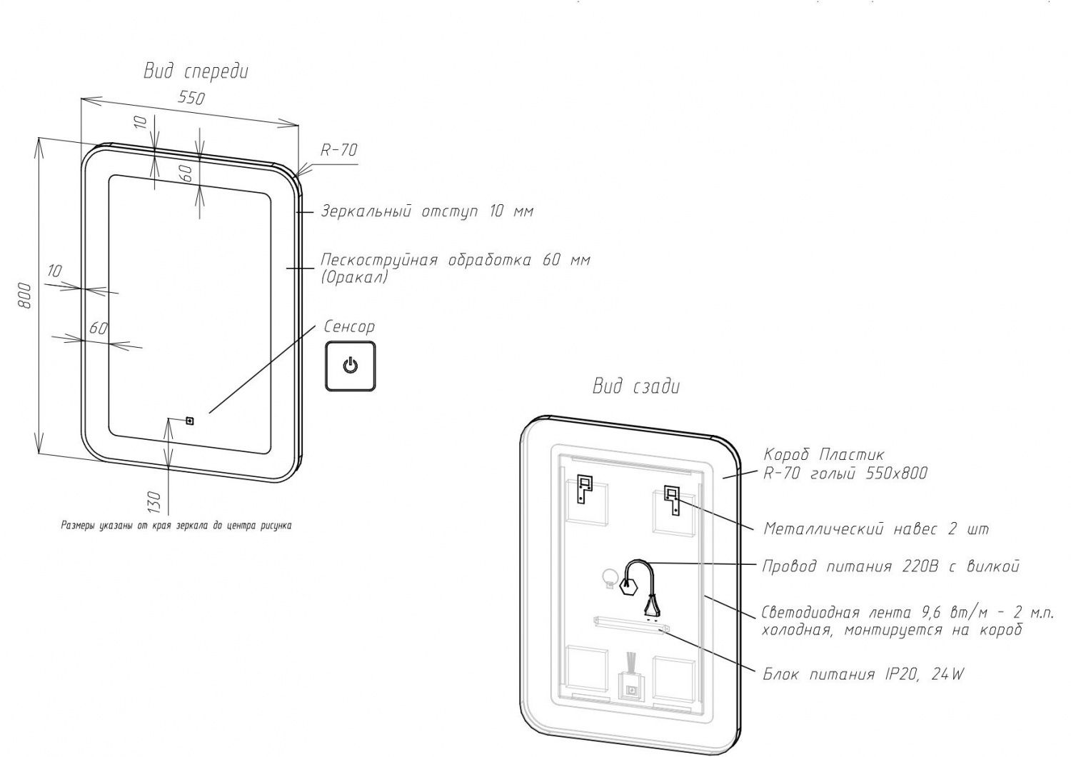 Оснащение: зеркало, крепеж, коробка, инструкция.