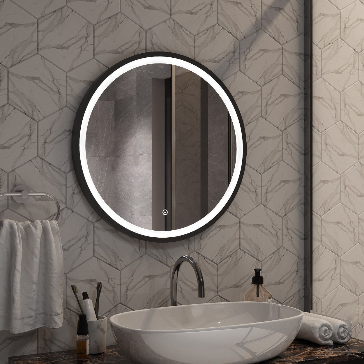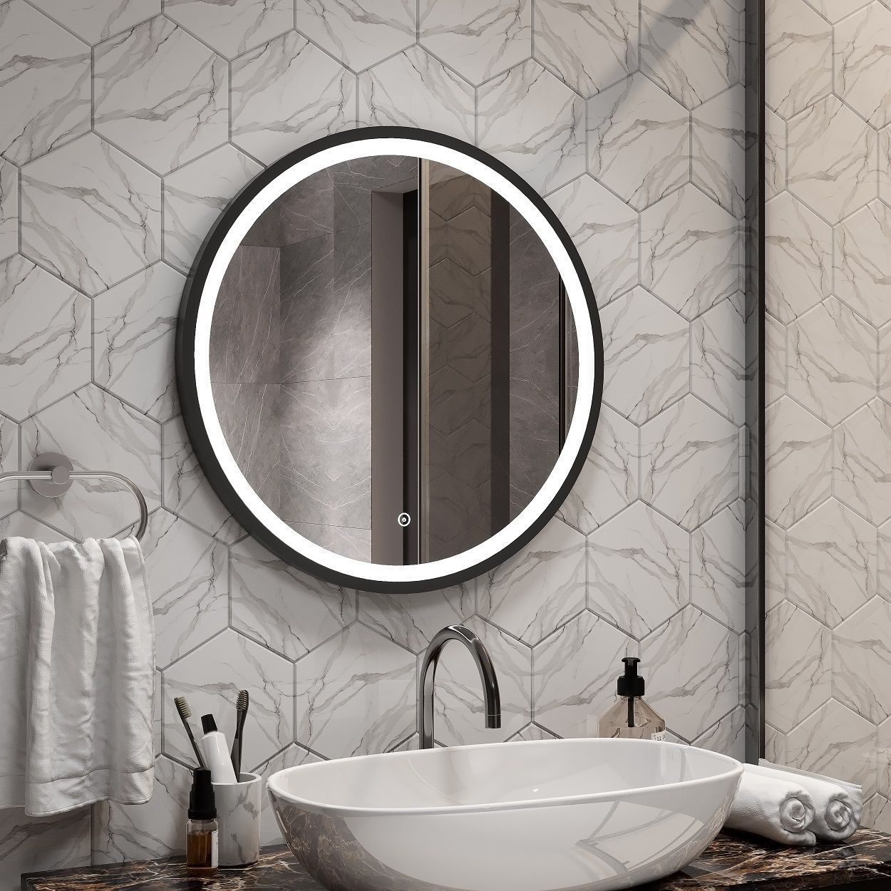 - Круглое зеркало для ванной комнаты оснащенное светодиодной подсветкой с диммером и сенсорным выключателем
