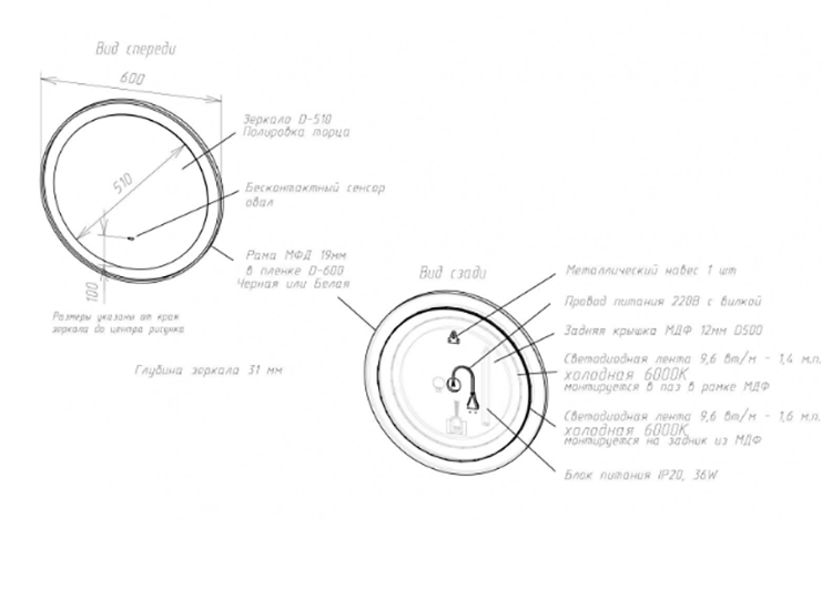 | Оснащение | Подсветка, Сенсор |