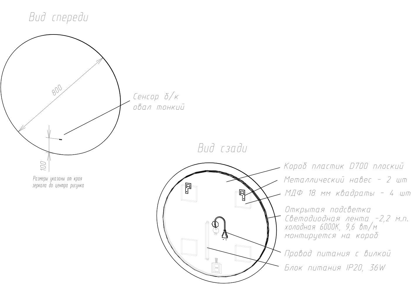 Оснащение: зеркало, крепеж, коробка, инструкция.