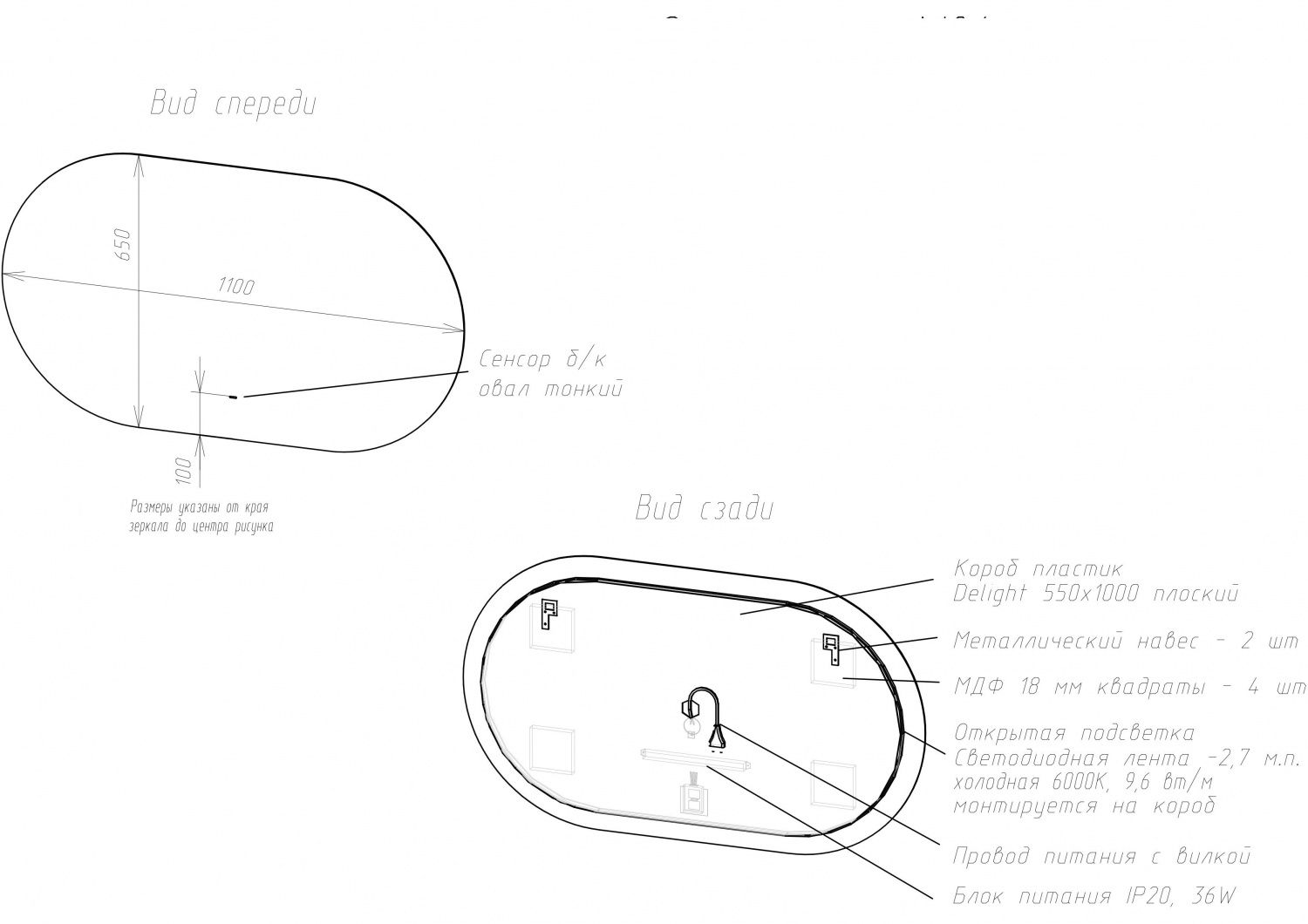 Оснащение: зеркало, крепеж, коробка, инструкция.