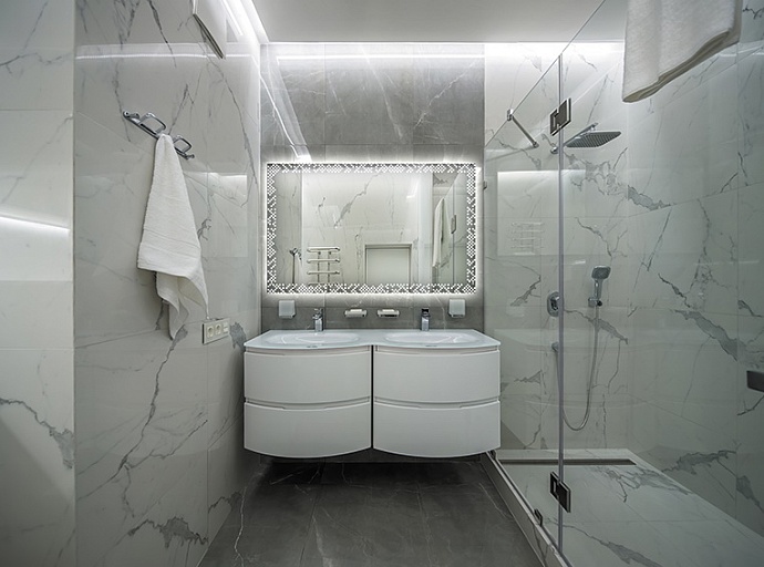 | Особенности | Зеркальная окантовка отсутствует, матирование начинается сразу от края зеркала. Световой короб полностью утоплен за матирование. Подключается напрямую к сети 220В |