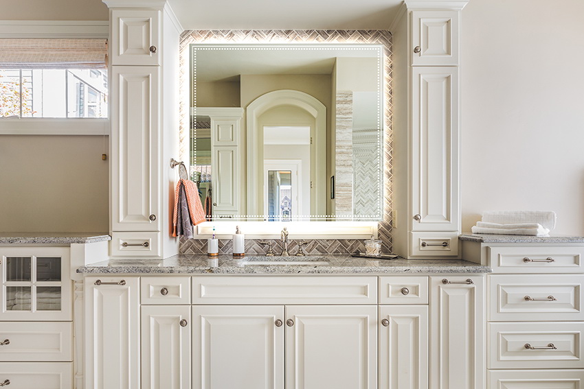 Косметическая линза – это популярный и незаменимый инструмент для косметических или косметологических процедур. Оно помогает рассмотреть свое лицо в малейших деталях. При выборе данной опции на основном зеркале будет сделан участок круглой формы с увеличивающим эффектом. Конструкция этого элемента расположена на тыльной стороне основного зеркала, благодаря чему все ее элементы защищены от попадания влаги и пыли, а лицевая сторона основного зеркала остается ровной и гладкой, поэтому его также легко мыть, как и зеркало без данной опции. Встроенное косметическое зеркало обладает 2-х кратным увеличением и светодиодной подсветкой как у основного зеркала. Подсветка выполнена в виде светового кольца вокруг увеличивающей линзы. Она позволяет еще лучше рассматривать свое лицо благодаря близкому источнику освещения. Электрическое питание осуществляется от сети.
