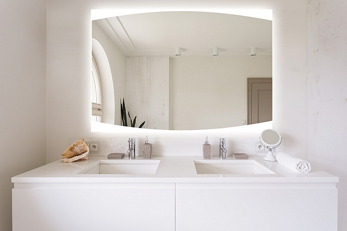 и сенсорных кнопок для настройки часов и включения подсветки. Этот вариант подойдёт тем, кто ждёт от зеркала не только красоты, но и информативности