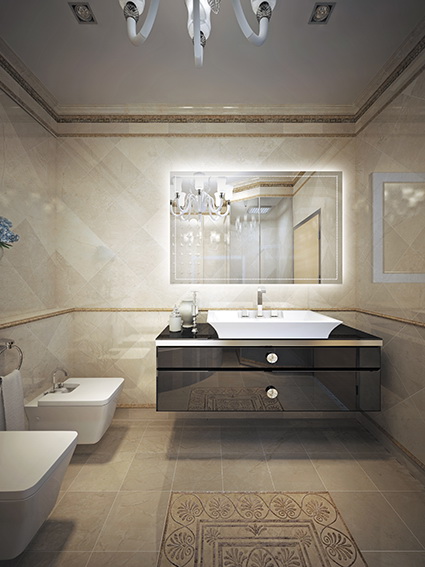 Часы с термометром, радио, Bluetooth колонками и сенсорным выключателем. Модель обладает современным дизайном и удобным сенсорным управлением функциями: музыкальная система (bluetooth) + доступ к радиостанциям, функция антизапотевания, встроенные часы и датчик температуры воздуха. Аудиосистема представляет собой расширенный аналог часов с сенсорным управлением. Этот модуль встраивается в отражающую поверхность зеркала и внешне представляет собой ЖК-дисплей с шестью сенсорными кнопками управления под ним. На дисплее отображается время, дата, температура в помещении, а также текущая радиоволна. Благодаря встроенной функции Bluetooth и наличию динамиков можно подключить к нему смартфон или планшет и наслаждаться любимой музыкой. Также с помощью сенсорных кнопок можно включать и выключать подсветку зеркала.