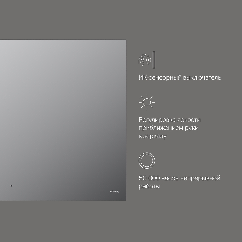 - ИК-сенсор позволяет управлять включением/выключением LED-подсветки без касания зеркального полотна.