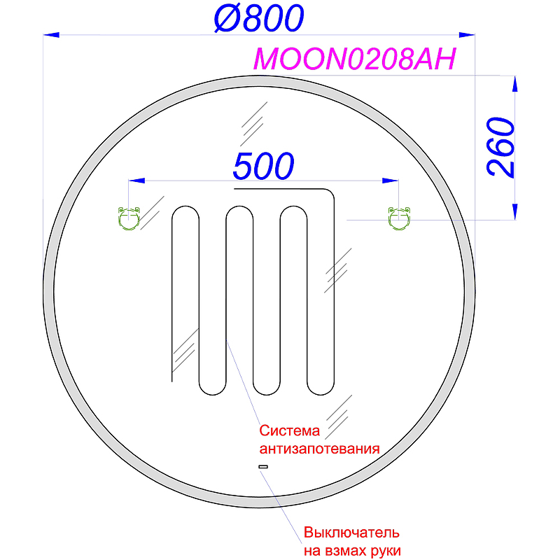 Зеркало с подсветкой и подогевом Aqwella Moon A (80х80) MOON0208AH