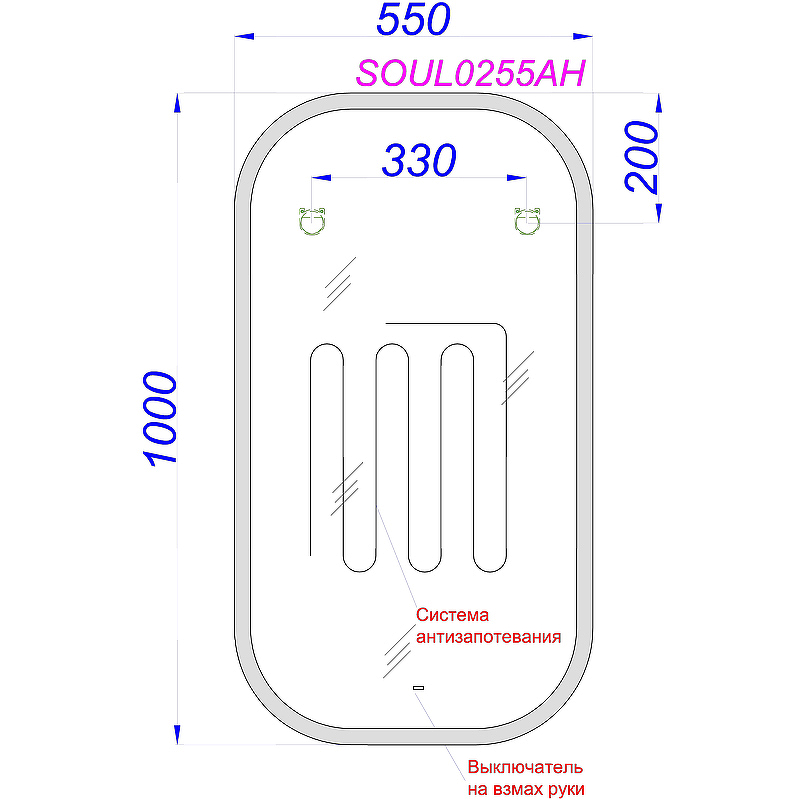Зеркало с подсветкой и подогревом Aqwella Soul (55х100) SOUL0255AH