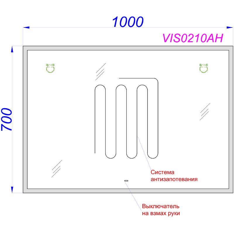Зеркало с подсветкой и подогревом Aqwella Vision A (100х70) VIS0210AH