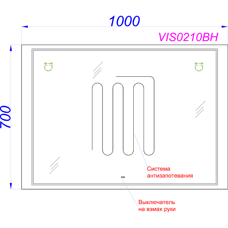 Зеркало с подсветкой и подогревом Aqwella Vision B (100х70) VIS0210BH