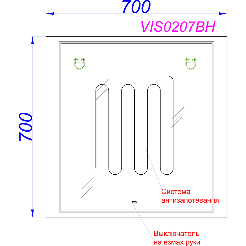 Зеркало с подсветкой и подогревом Aqwella Vision B (70х70) VIS0207BH