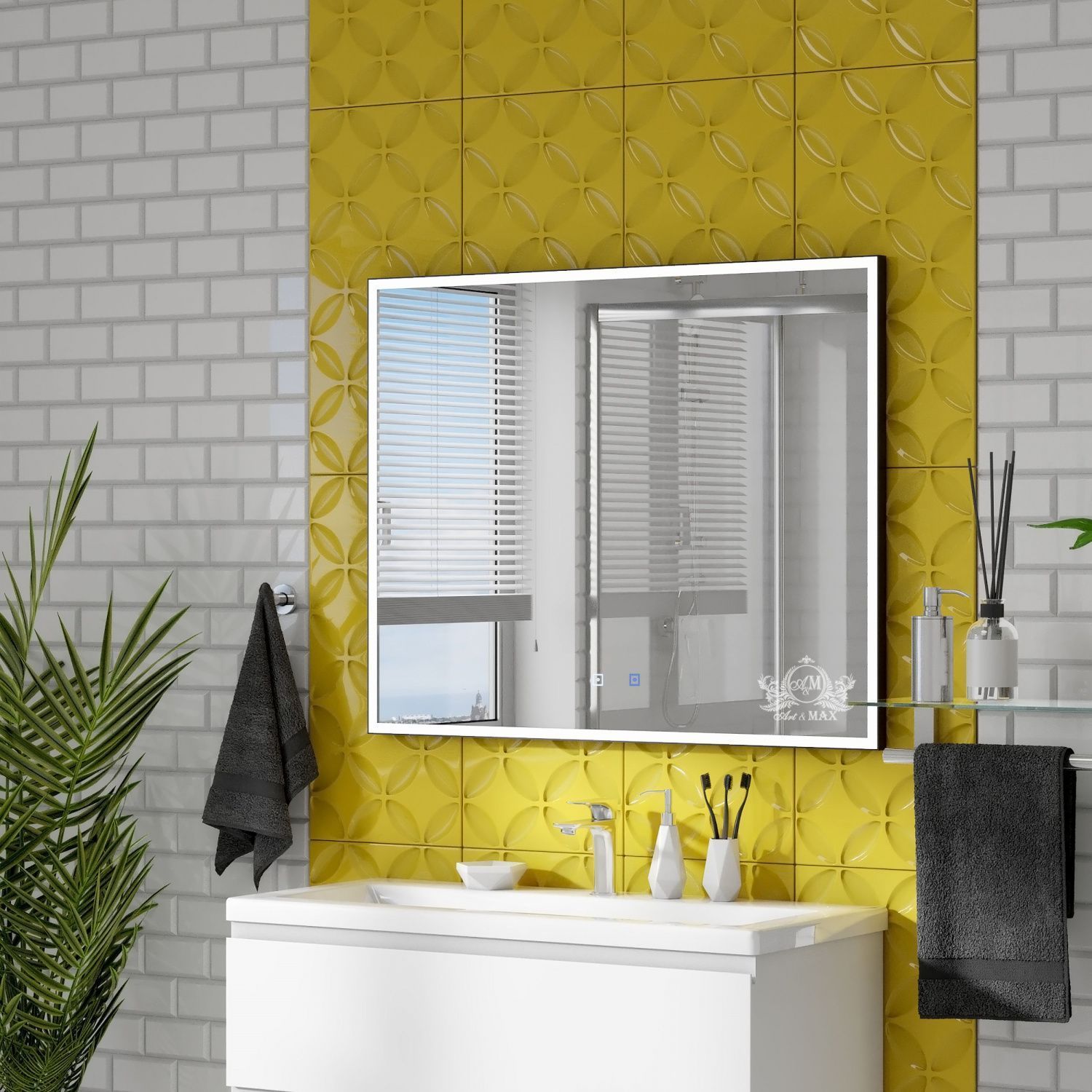 Зеркало с подсветкой и подогревом Art&Max Arezzo 100х80 см черный AM-Are-1000-800-DS-FC-H-Nero