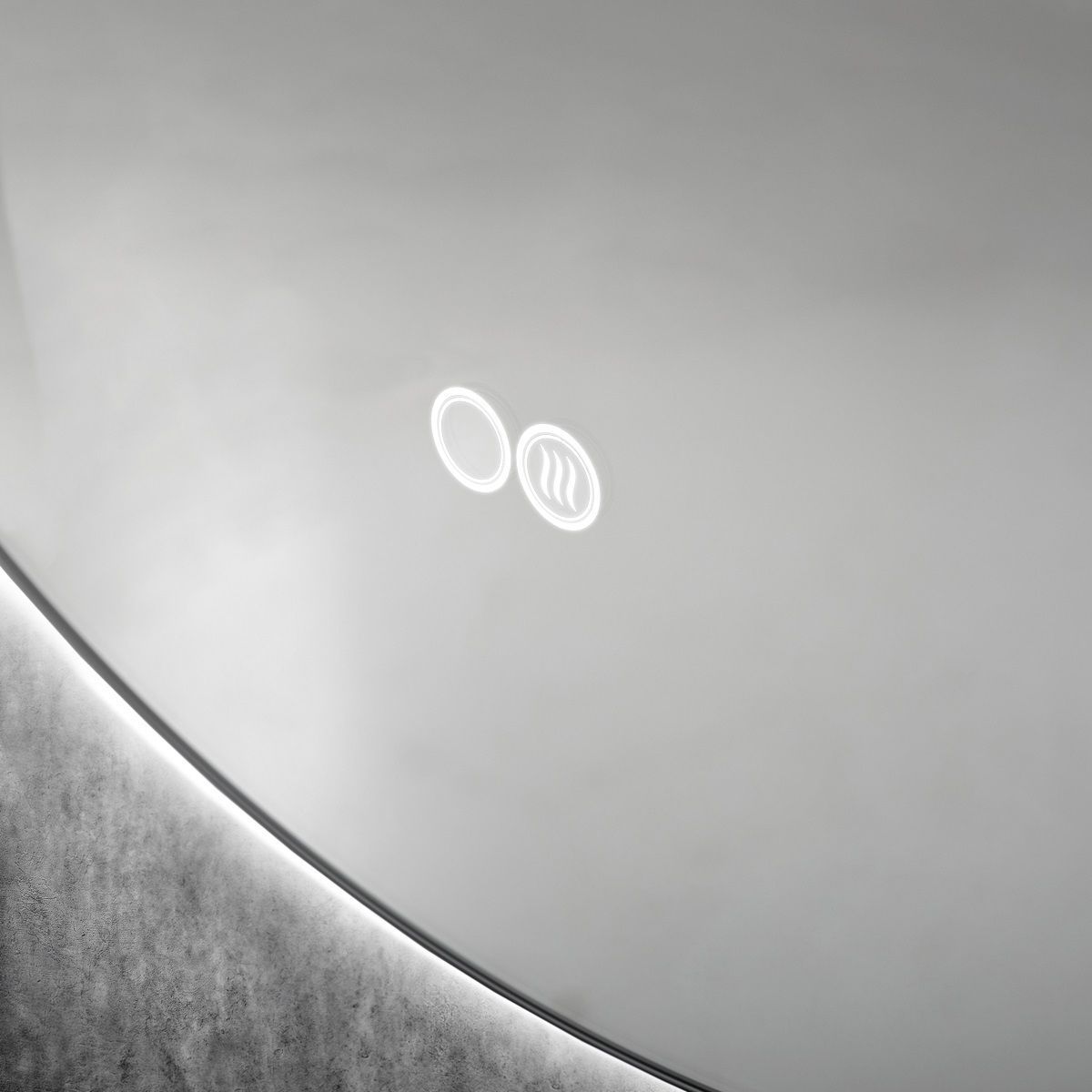 - Открытая ореольная подсветка создает эффект парящего зеркала