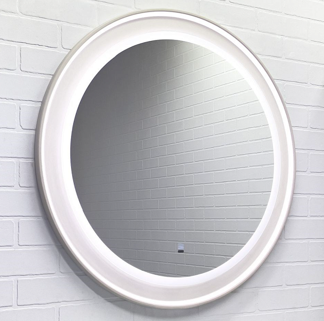 Зеркало Comfortу Ереван - LED-подсветка, датчик движения, цвет серый шелк. Высококачественное зеркальное полотно с амальгамой на основе серебра. Зеркало оборудовано ореольной и фронтальной LED подсветкой с бесконтактным включателем со встроенной функцией регулировки яркости и функцией антизапотевание. Температура подсветки: 6000-6500К холодная. Основа зеркала из МДФ фрезерована кантом по периметру и облицована в матовую пленку белого цвета.