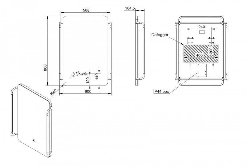 Зеркало с подсветкой и подогревом Esbano 60х80 ESMI3732H2D