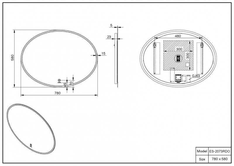 Зеркало с подсветкой и подогревом Esbano 78х58 ESMI2073RDO