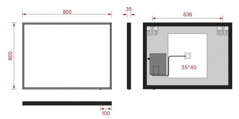Зеркало с подсветкой и подогревом Esbano 80х60 черный ESMR3803RDB
