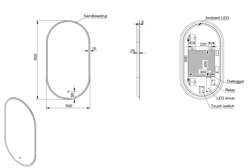 Зеркало с подсветкой и подогревом Esbano ES-2073 FVD 50х90 ESMI2073FVD
