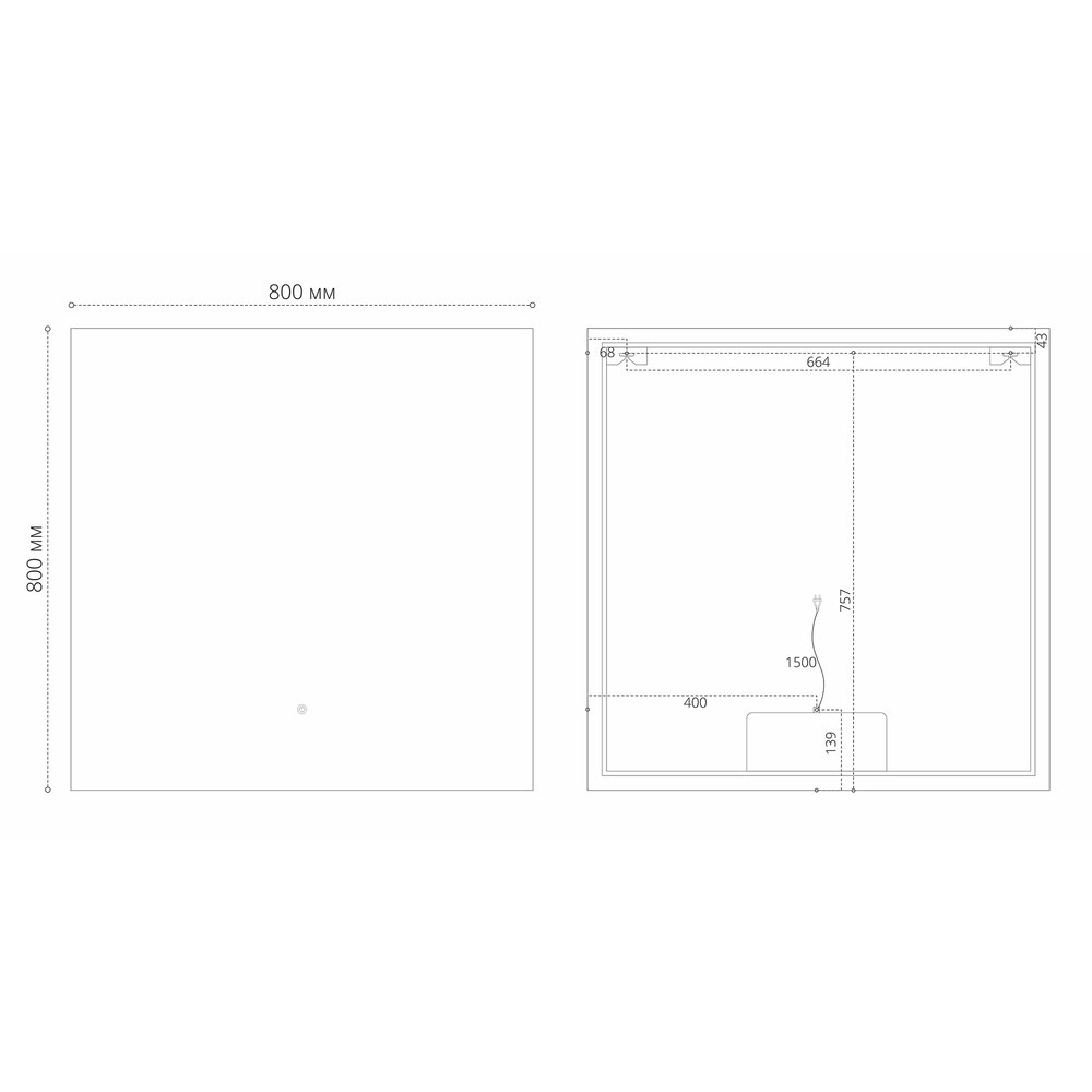 Зеркало с подсветкой и подогревом Grossman PRAGMA-норма BLACK 80х80 см 1880802
