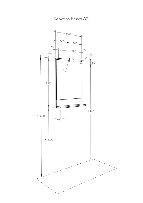 Зеркало с подсветкой и полкой Aquaton Бекка 60 см дуб сомерсет 1A214302BAC20