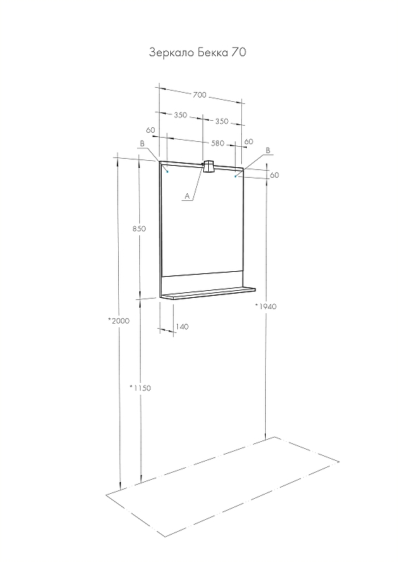 Зеркало с подсветкой и полкой Aquaton Бекка 70 см дуб сомерсет 1A214402BAC20