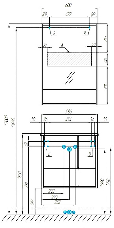 Зеркало с подсветкой и полкой Aquaton Ривьера 60 см 1A238902RVX20