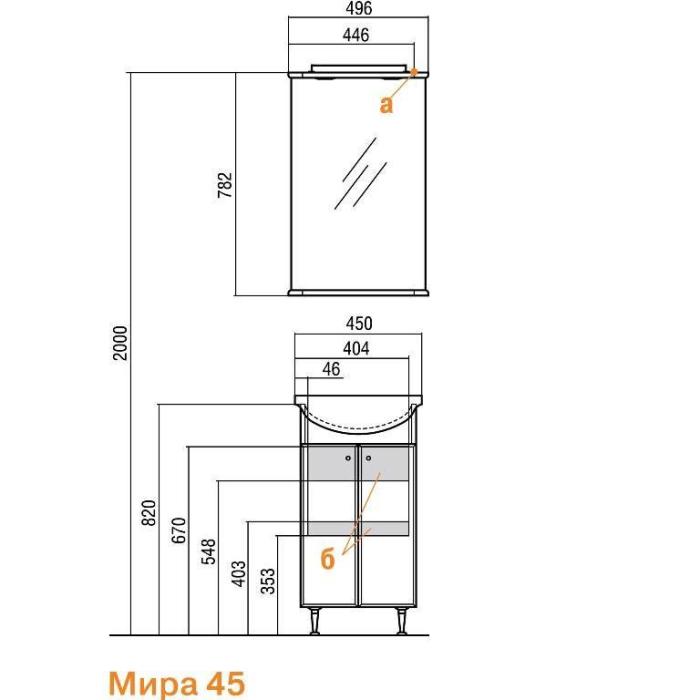 Зеркало с подсветкой и полочкой Aquaton Мира 45 см 1A019802MR010