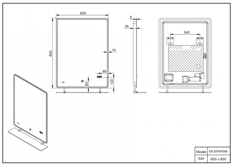 Зеркало с подсветкой, подогревом, часами и полочкой Esbano 60х80 ESMI2073HDSA