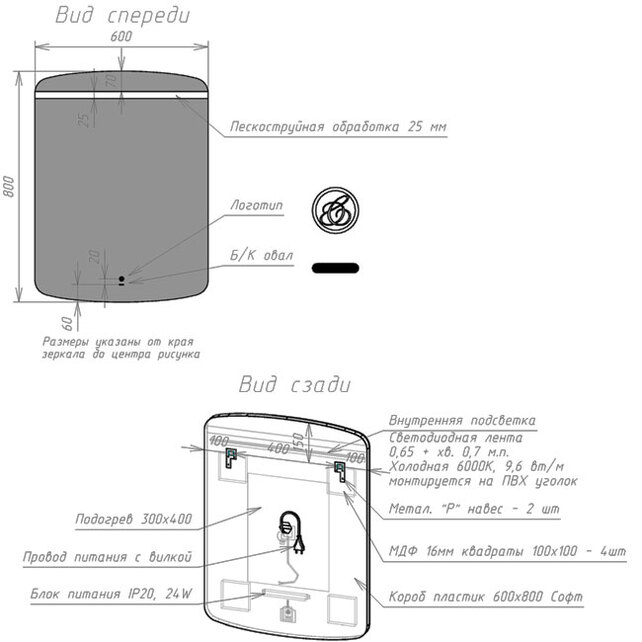 Зеркало с подсветкой/ подогревом/ сенсором на движение Caprigo Софт (60х80) 2060H