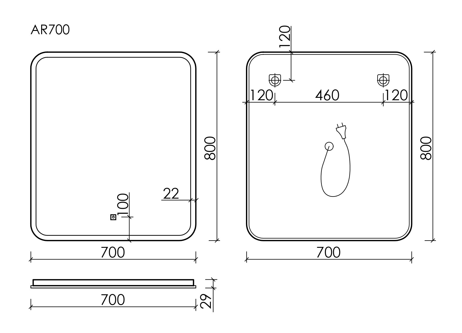 Комплектация: LED подсветка; димируемый сенсорный выключатель, пластиковый светопропускающий короб