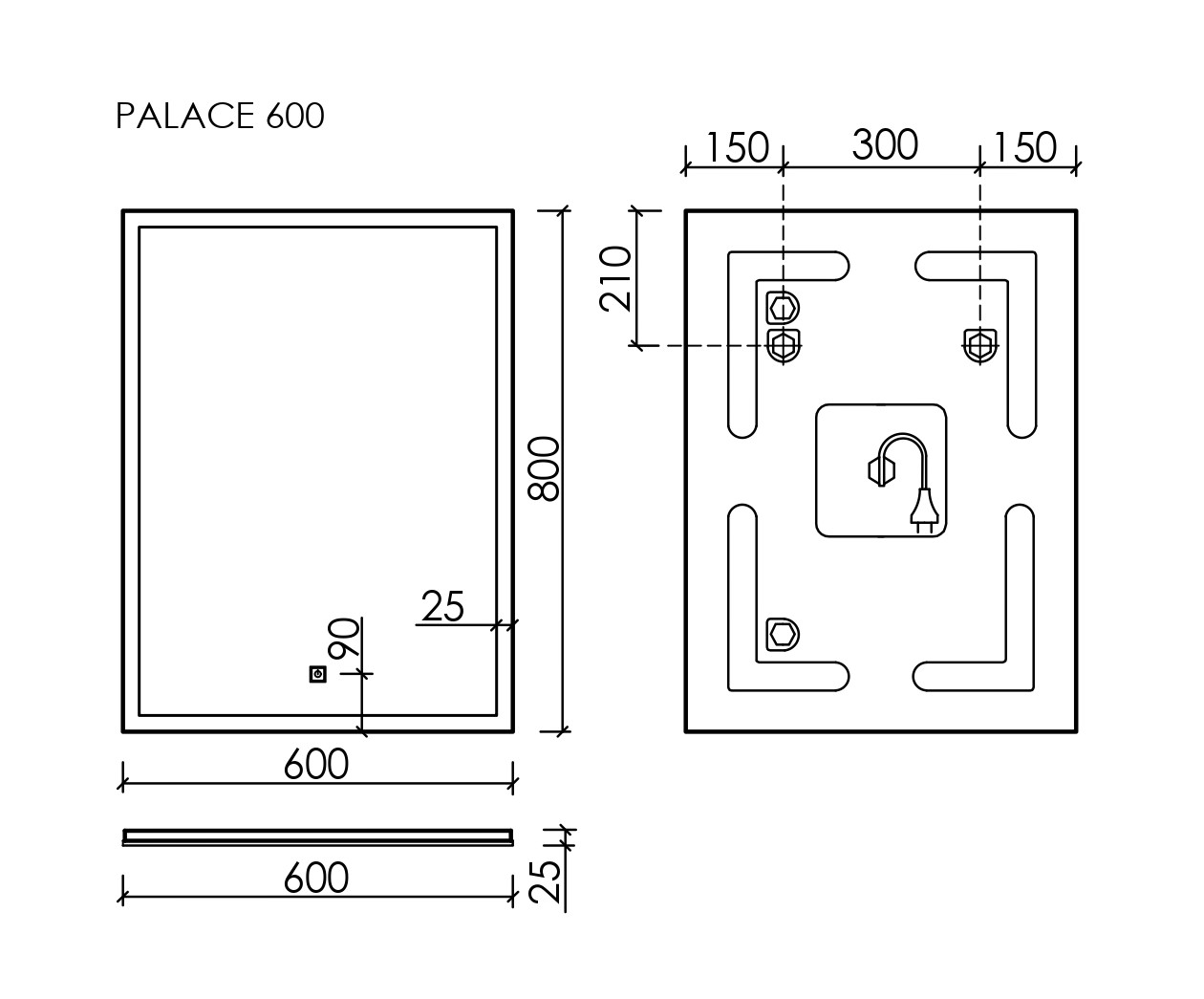 Комплектация: LED подсветка; димируемый сенсорный выключатель, пластиковый светопропускающий короб