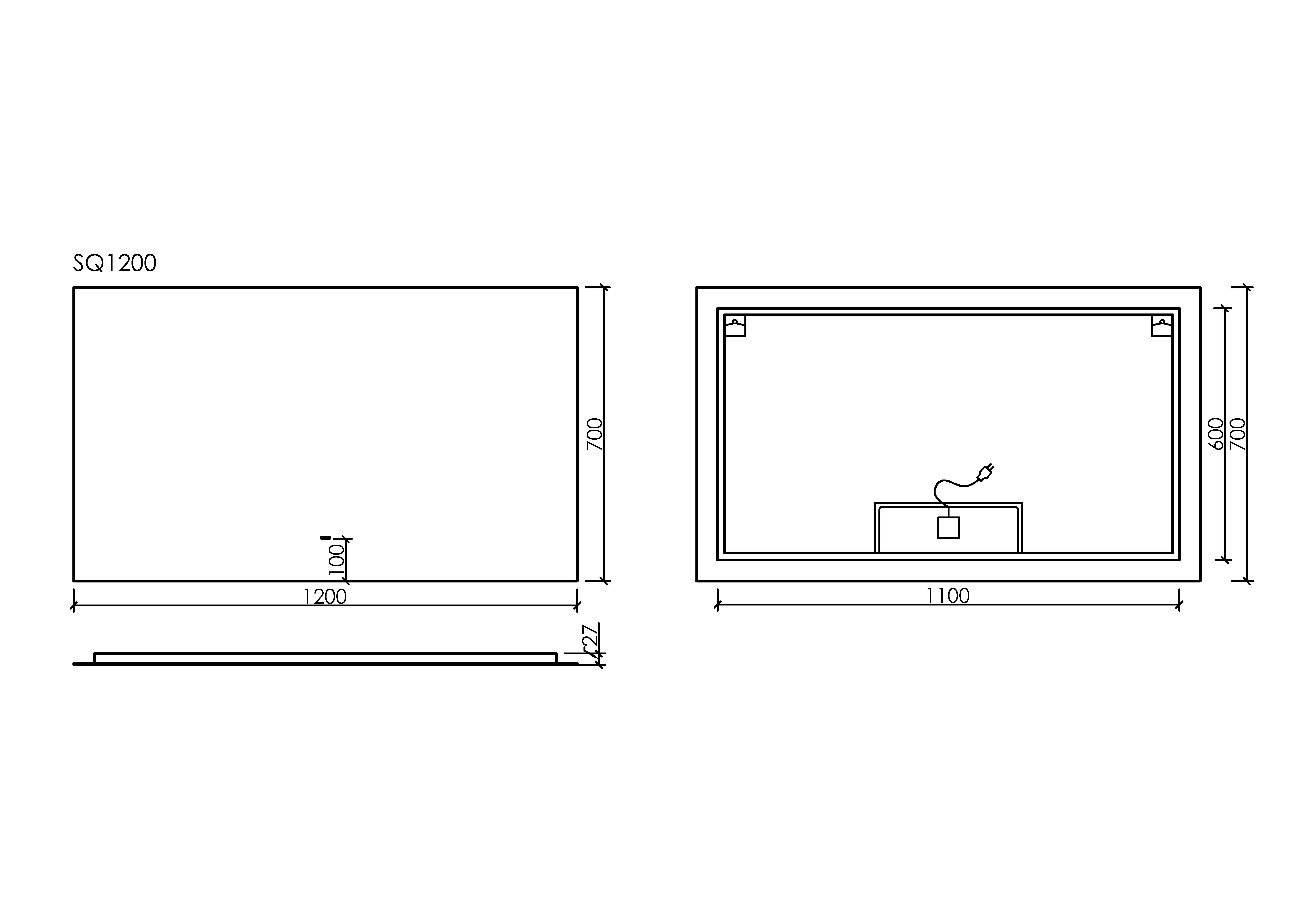 Зеркало с подсветкой Sancos Square 2.0 120х70 см led подсветка 2700K/4000K/5000K SQ2.1200