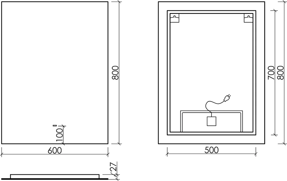 Комплектация: LED подсветка; выключатель Touch сенсор диммируемый