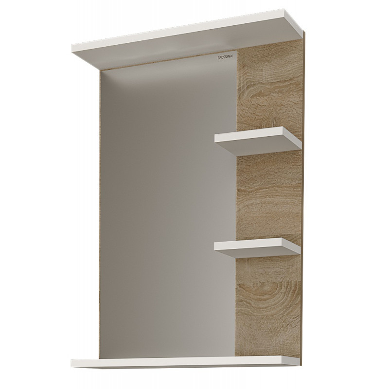 Зеркало с полками Grossman Поло 47х70 см дуб сонома светлый/белый 204701-1