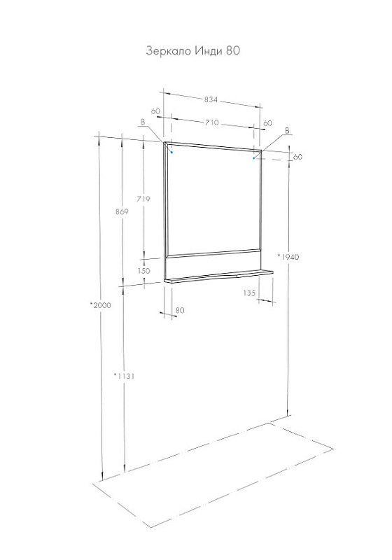Зеркало с полкой Aquaton Инди 80 см 1A188502ND010