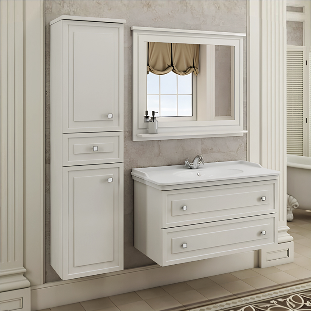Зеркало с полкой Comforty Феррара 100 см белый глянец 00004147993