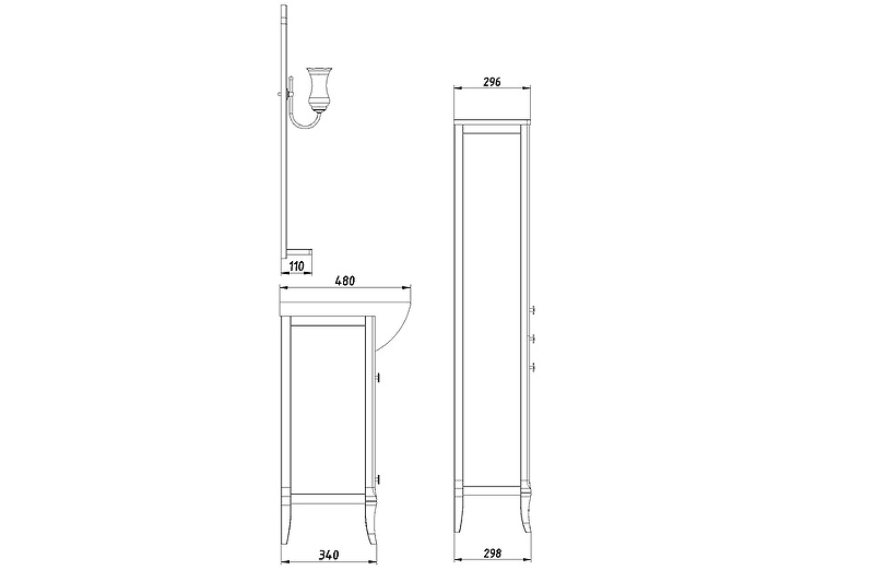 | Оснащение | 2 светильника 40 Вт, полка. крепеж к стене |